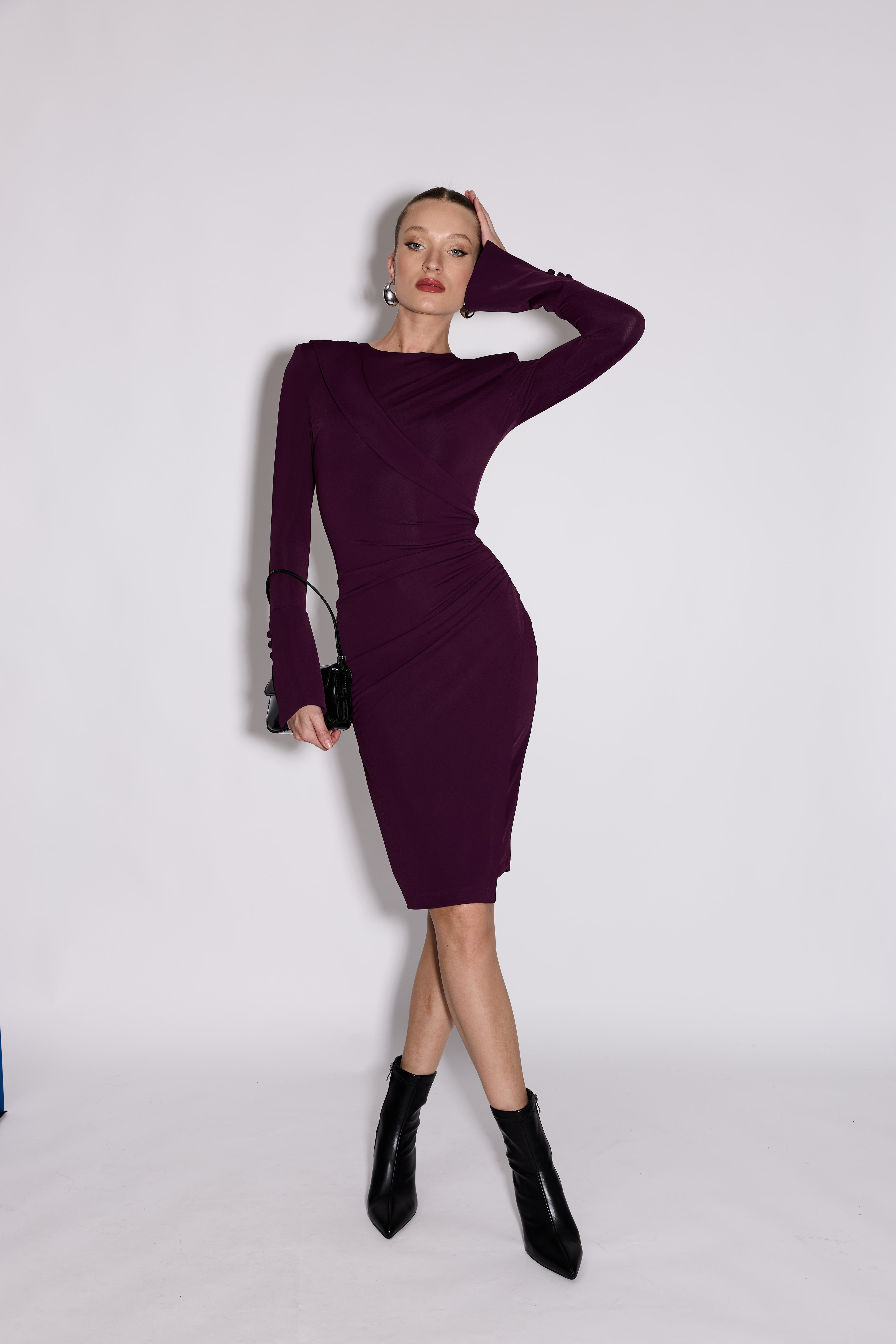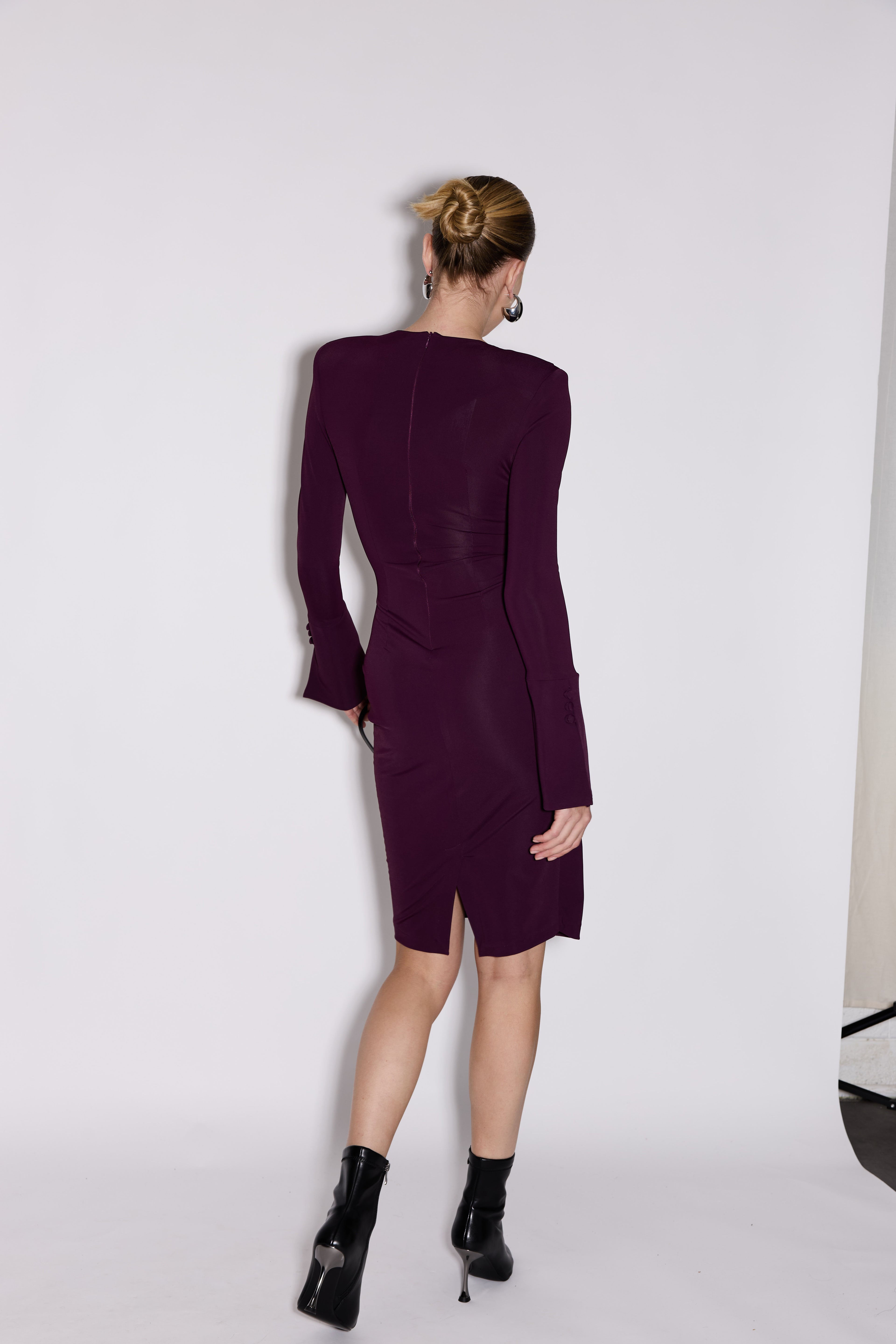 שמלה צנועה מידי , שרוולים ארוכים בסיומת שסעים בצדדים וכפתורים מבד דק ונעים