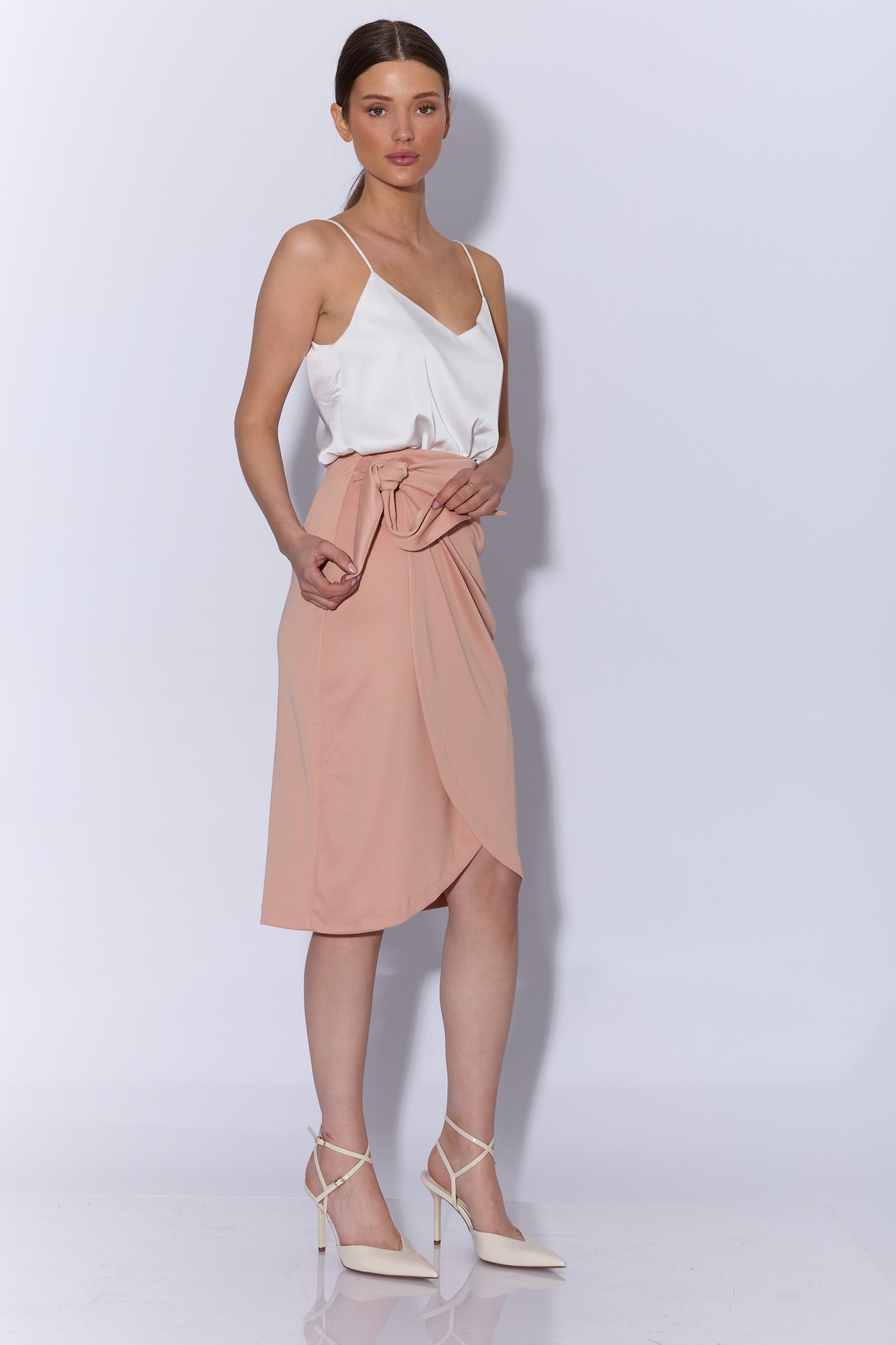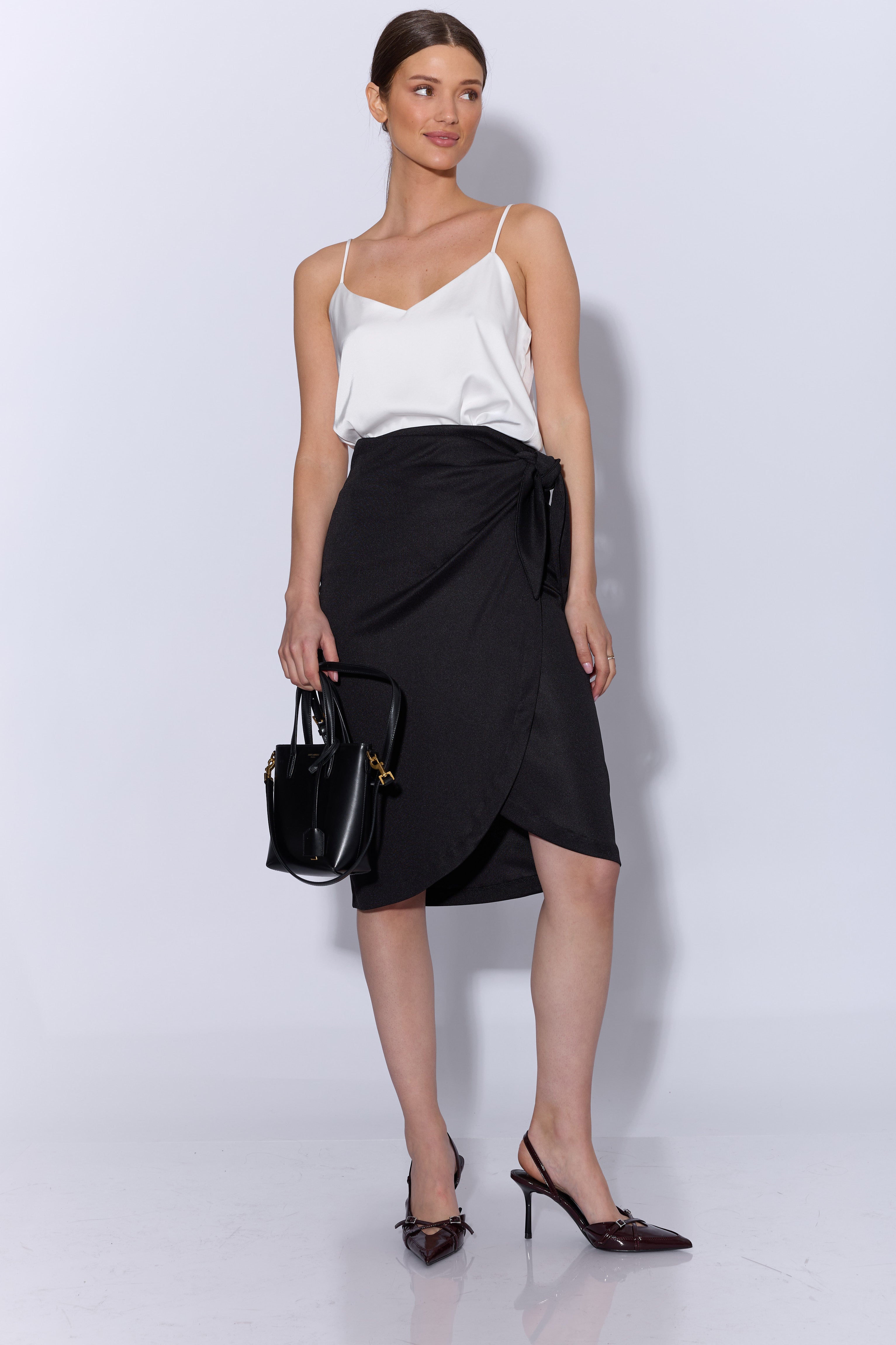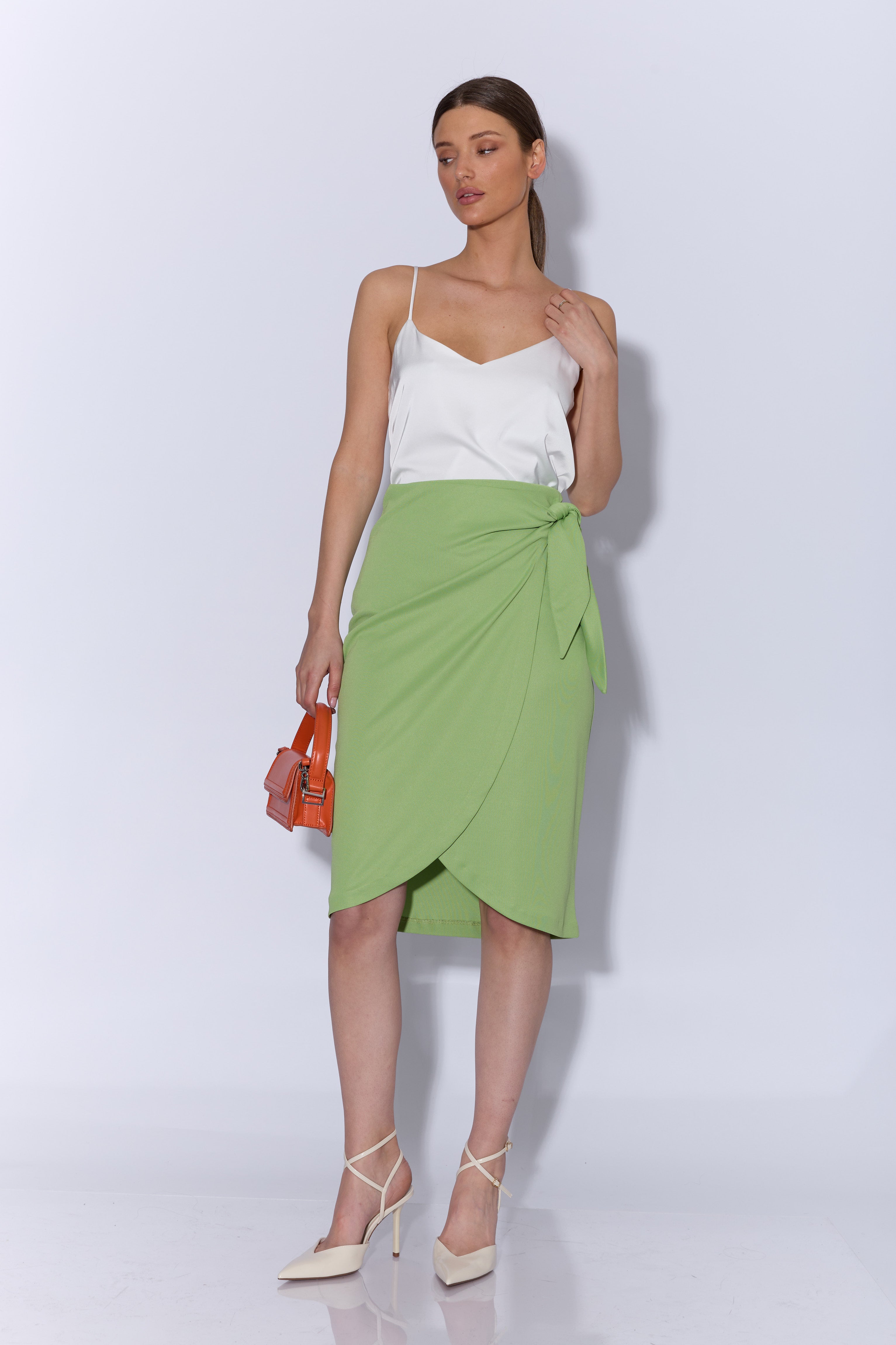 חצאית מידי בגזרת מעטפת וקשירה בצד מבד נעים וקייצי