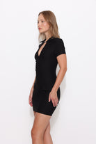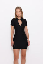 שמלה מיני עם אבזם צבע כסף בד מחטב