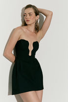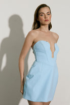שמלה מיני בגזרת A עם מחוך סטרפלס בגימור גל ייחודי ואלמנט זהב בחזית . עשויה מבד מחויט ואיכותי עם רוכסן נסתר בגב . מושלמת לערב, לאירועים מיוחדים ללוק בלתי נשכח.