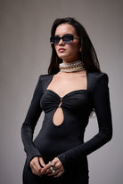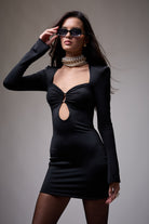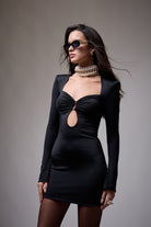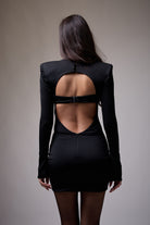 שמלה מיני עם שרוולים ארוכים כריות בכתפיים נסגרת בגב באמצעות רוכסן