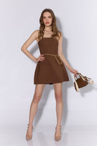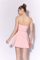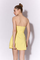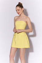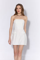 שמלה מיני סטרפלס עם כיסים וסגירה עם רוכסן בגב
