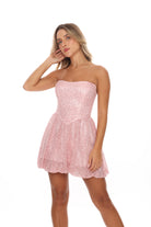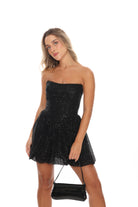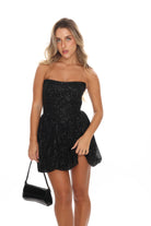 שמלה מיני סטרפלס מחוך מבד פייט בגזרת בלון נסגרת בגב עם רוכסן
