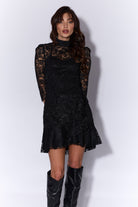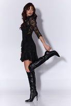 שמלה מיני מבד תחרה בגזרת קולר עם כיווצים במותן מחשוף גב פתוח
