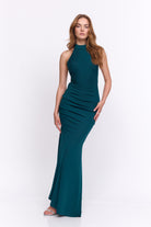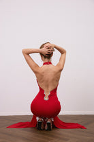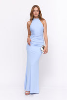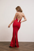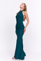 שמלה מקסי קולר עם גב חשוף עמוק ואלמנט כסף ייחודי. עשויה מבד נשפך ואיכותי המחמיא לגוף, לשמלה כיווצים עדינים בצד עם רוכסן נסתר לנוחות מושלמת ושסע אחורי שמוסיף טאצ' אלגנטי למראה שיקי ובלתי נשכח.