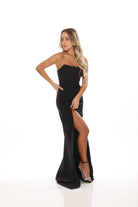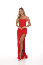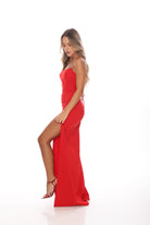 שמלה מקסי בגזרת מחוך עם שסע עמוק בצד הרגל עם קשירה בגב מבד איכותי נשפך