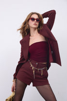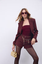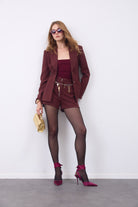 חליפה אלגנטית מבד מחויט ואיכותי , המשלבת ג'קט שרוול ארוך בגזרה מחמיאה וקלאסית יחד עם מכנס קצר בגזרה מושלמת שילוב מושלם ללוק שמתאים לעבודה , לבילוי או לשגרה יומיומית מלאה בסטייל.