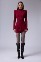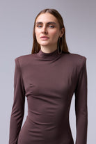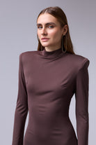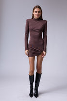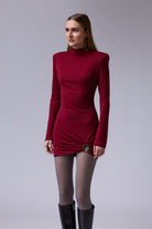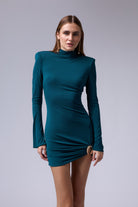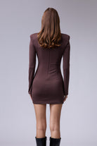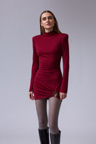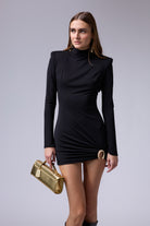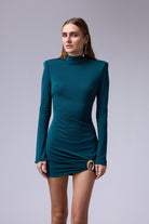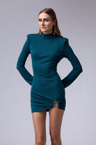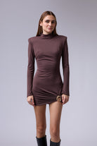 שמלה מיני חתיכית סגורה מבד אמזון עם אבזם זהב ברגל עם שרוול טיפה רחב בסופו