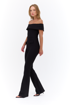 אוברול כתפיים חשופות מבד מחטב , נסגר בגב עם רוכסן נסתר מקדימה דמוי כיסים